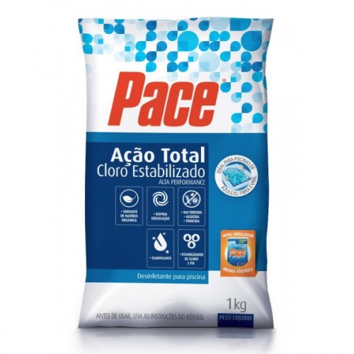 O Pace Ação Total é um cloro granulado estabilizado de alta performance, com ação virucida comprovada contra os vírus presentes na água, causadores de diarreia, vômito e febre. Um produto completo e eficaz, indicado para eliminar bactérias e oxidar matéria orgânica presente na água da piscina. Inibe odores desagradáveis e previne a transmissão de doenças infecciosas.