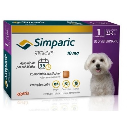 - Modelo: Antipulgas Simparic 10mg Cães 2,6 até 5Kg 1 Tablete