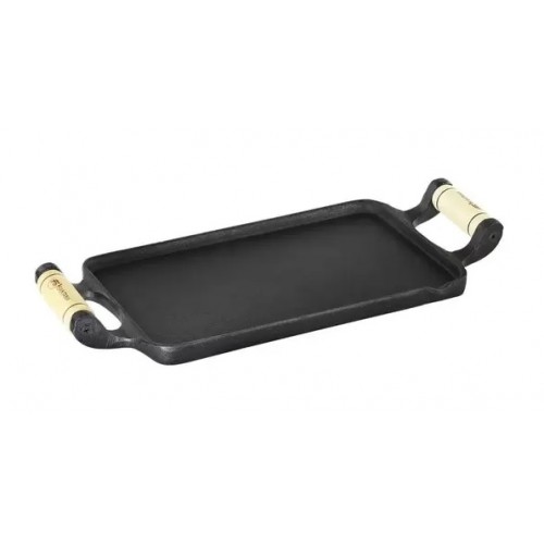 A Bifeteira Lisa de Ferro Fundido FS-75.1 possui 2 alças de madeira, além de uma estrutura com chapa lisa retangular feita em ferro fundido altamente durável, com garantia de durabilidade e resistência.