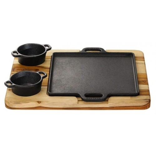 Chapa de Ferro com Molheira e Suporte de Madeira