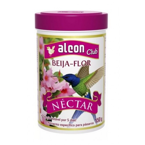 É um alimento natural e saudável para Beija-Flores. Promove também a atração de outros pássaros como Cambacicas, Saíras e Sanhaços. Os Beija-Flores passam o dia em busca do néctar das flores, sua principal fonte de alimento, devido à grande necessidade de energia que requerem. O uso de açúcar comum ou mel em bebedouros para Beija-Flor é condenável. São produtos que fermentam rapidamente e podem contaminar os pássaros com fungos que causam uma micose na boca, o que pode levá-los a morte. Alcon Club Néctar Beija-Flor apresenta rápida assimilação e transformação em energia. Trata-se de um produto estável cuja solução preparada no bebedouro pode permanecer disponível para os pássaros por até 5 dias, sem risco de fermentação ou contaminação por fungos e bactérias. Fornece também um conjunto de vitaminas importante para a nutrição dos pássaros