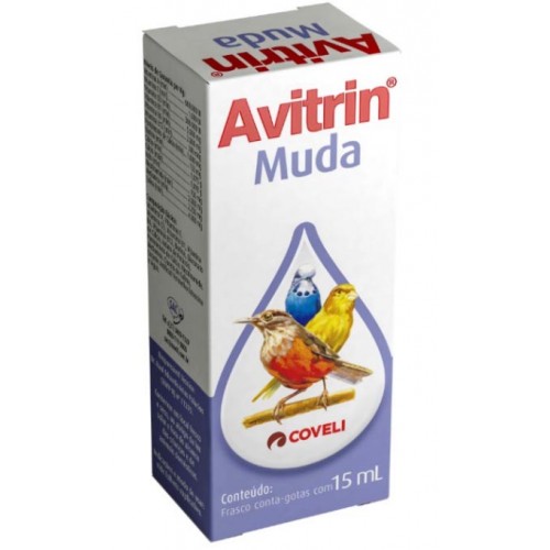 Avitrin Muda traz em sua composição Vitaminas A, E, D3, B1, B6 e B12, Pantotenato de Cálcio, Biotina, Gluconato de Cálcio, Iodato de Potássio, Nicotinamida, Metionina, Cloreto de Colina, Corante Artificial Vermelho, Eritrosina e Água. Possui uma fórmula especialmente desenvolvida para utilização nos períodos: antes, durante e após a muda.